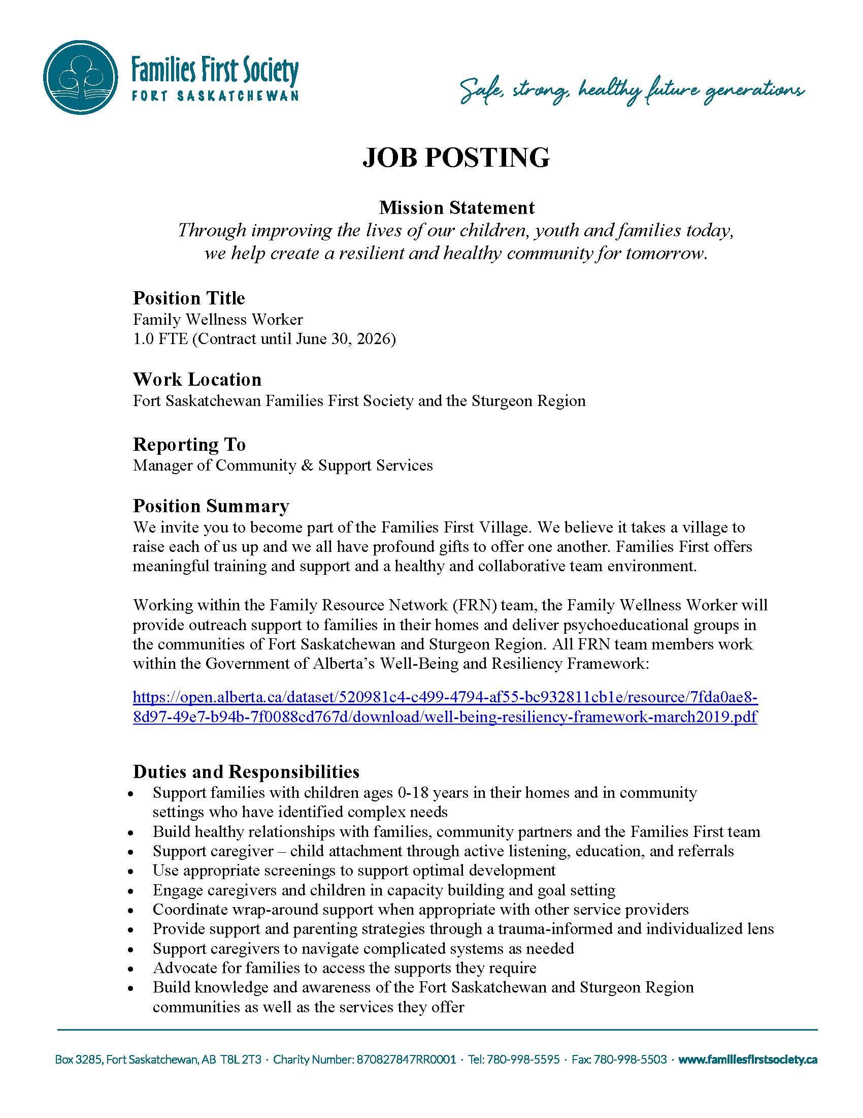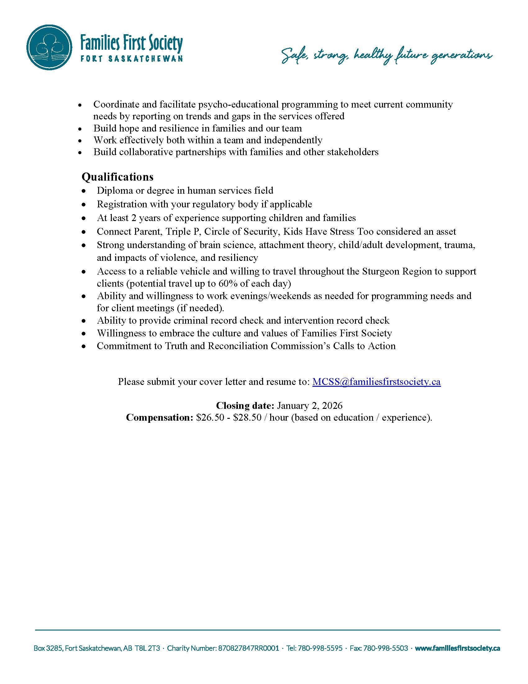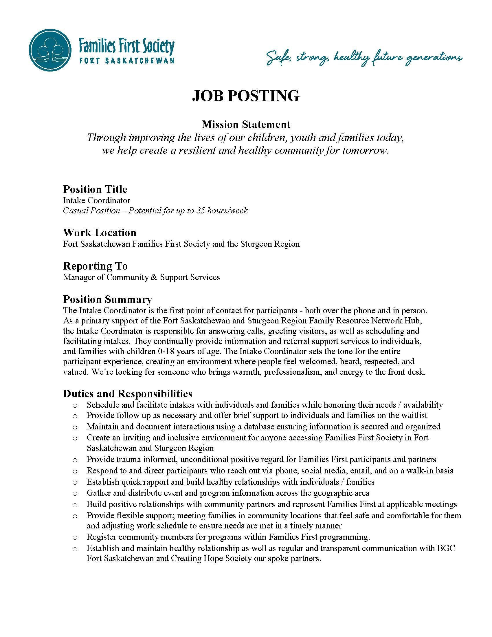 Children's Programmer (Casual); Intake Coordinator (Casual); Family Wellness Worker (Contract)